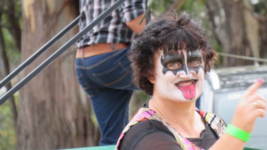 vor der Bühne wird fleissig getanzt, neu erstandenen Gesichtsbemalungen zur Schau gestellt