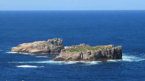 und noch einen Ausblick auf The Nuggets, vier kleine Vogelbrutinseln bietet.