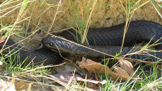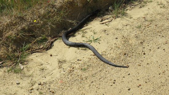 bis wir 3 ½ Stunden später, gute 10km bei 330Hm zurueckgelegt haben und wieder zurück am Waterhole und somit auch ganz in der Nähe von SL3 sind. Beim verlassen des Parks kreuzt diese Schlange unseren Weg,