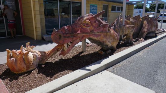 und rein nach St. Hellens wo das Info Center von diesem 16m langen Drachen bewacht wird.