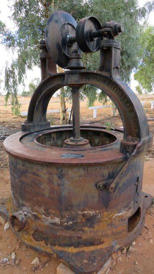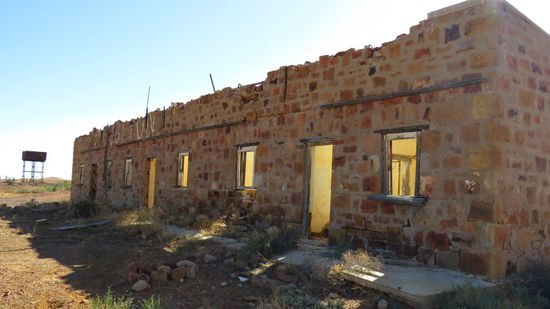 die Wasser aus einem nicht versiegenden Wasserloch in Eisenbahn-Wassertanks beförderte, gute 30km weiter die Mount Dutton Siding, Wassernachfüllstation, Bedarfsbahnhof, Eisenbahn- und Telegrafenleitung-Reparaturstation und Viehverladestelle, alles in einem.