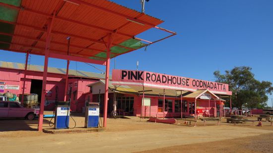 mit 170 Ew. schon fast eine Grossstadt im Outback, Dreh-und Angelpunkt hier das berühmte Pink Roadhouse -