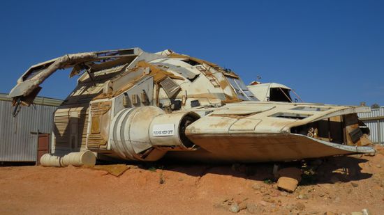 Unseren letzten Tag in Coober Pedy verbringen wir mit Wasser fassen (AUD 1 für 30l), rand-voll-tanken für AUD 1,43, denn weiter nördlich im Outback kann der Dieselpreis auch mal die AUD 2 Marke überschreiten und natürlich werden auch die Lebensmittelvorräte nochmal so weit aufgefüllt, so dass wir auch 10 Tage ohne Einkaufen auskommen können. Beim letzten Bummel durch den Ort entdecken wir auch noch das Spaceship, ein Relikt aus einer Filmkulisse