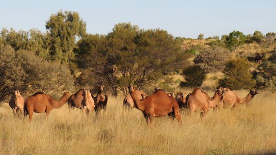 noch eine Gruppe wilder Kamele am Strassenrand,