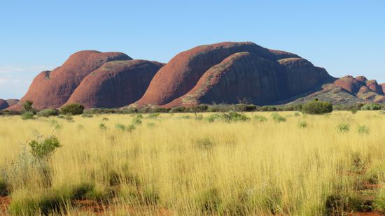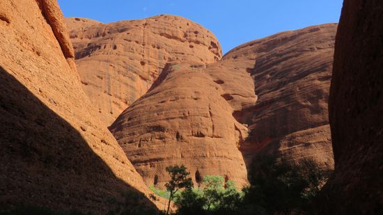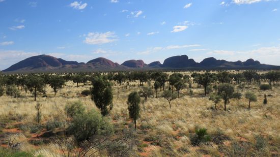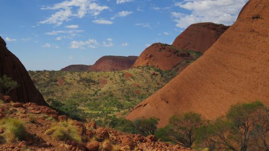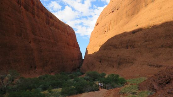 wo eine weitere 2,6km lange, recht einfache Wanderung auf uns wartet, die wir in einer knappen Stunde zurücklegen. Nochmals ein letzter Blick zurück auf die Olgas,