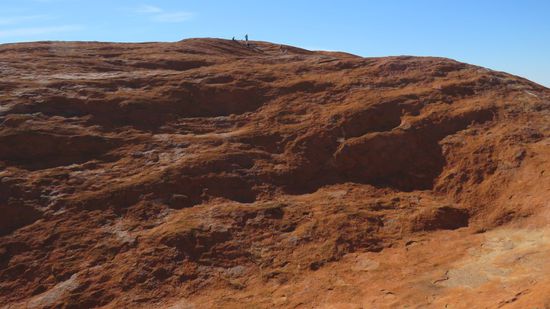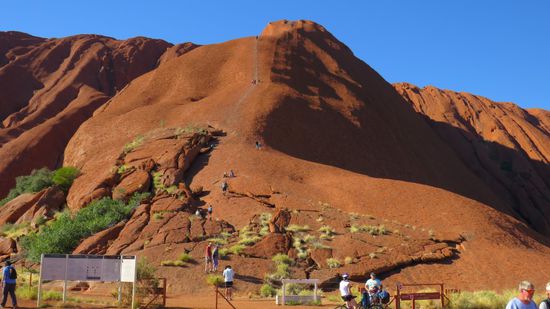 Samstagmorgen, strahlender Sonnenschein, wir erfahren, dass der Uluru Climb heute geöffnet ist, auf geht’s, denn da wollen wir heute unbedingt hoch.