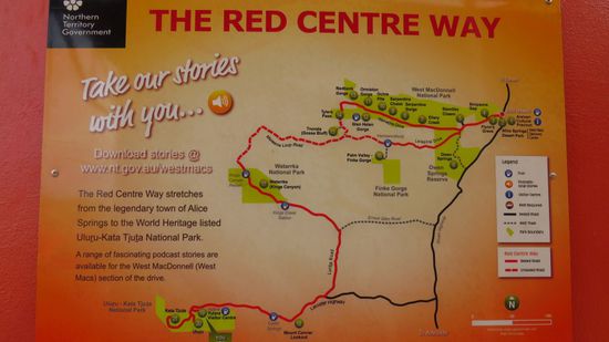 Ziel: Von der Grenze zu SA auf dem Stuart Hwy Richtung Norden bis Erldunda und auf dem Red Centre Way (Lasseter Hwy) Richtung Westen bis zum Uluru (Ayers Rock) - Kata Tjuta (Olgas) NP, wir machen den Uluru Climb, besuchen das Camel Race und fahren dann auf dem Red Centre Way (Luritja Road) Richtung Norden bis zum Kings Canyon.