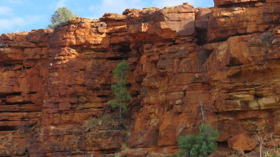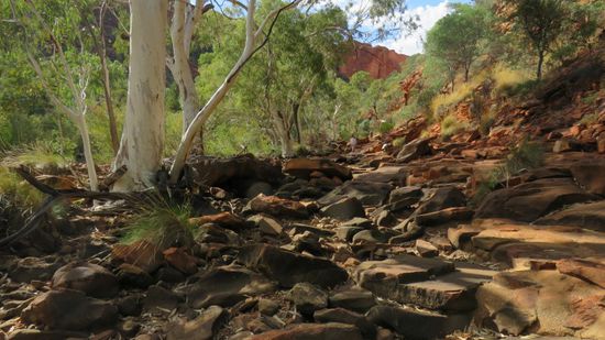 und erreichen dann den Watarrka (Kings Canyon) NP. Heute noch die kurze 2,5km H/R Wanderung zu Kathleen Springs, einem nicht versiegenden Wasserloch,