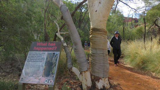 der natürlich genauso wenig wie alle anderen Hügel hier auf Forderung der Traditionellen Landeigentümer nicht betreten werden darf. Nach 3 Stunden gemütlichen Wanderns sind wir wieder beim Auto, fahren ein kleines Stückchen zurück bis zur Walpa Gorge,