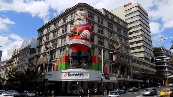 geht es dann an Countdown, einem Supermarkt vorbei zurück zum Hotel. Dort auf der Dachterrasse, ein fantastischer Gasgrill, wir werfen zwei Steaks drauf, haben zum ersten mal seit Wochen ausreichend Fleisch zum Abendessen, Das Abenteuer Neuseeland kann beginnen.