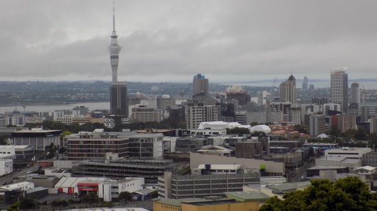der sich aber scheu mit recht dichten Wolken bedeckt –wir haben etwa irgendwelche Maori Geister beleidigt? Ein vernebelter Rundblick, ein Bild auf Downtown