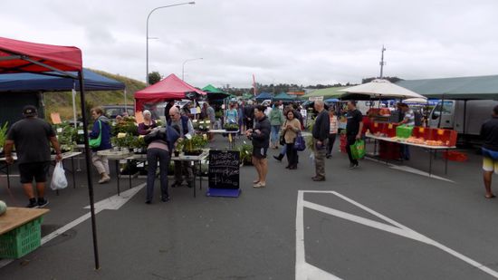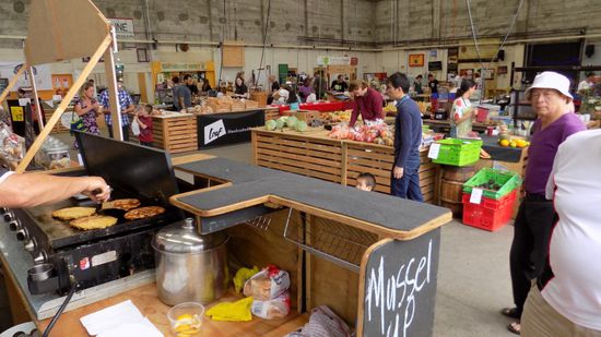 Während in Auckland die Vorbereitungen für die heutige Santa Claus Parade auf vollen Touren laufen, werden wir mit dem Taxi abgeholt und zum Vermietstation unseres Leihwagens gebracht. Dort lernen wir Galileo kennen, unseren Begleiter für die nächsten 3 Monate. Es dauert doch noch einige Zeit, bis alles verladen, verstaut ist. Gegen Mittag endlich sind wir fahrbereit, unser erstes Ziel für heute ist Hobsonville, wo beim Fähranleger jeden Sa. und So. ein Farmer’s Market abgehalten wird. Selbstgebackenes Brot und Gemüse interessieren uns noch wenig, aber diese Muschelpfannkuchen,