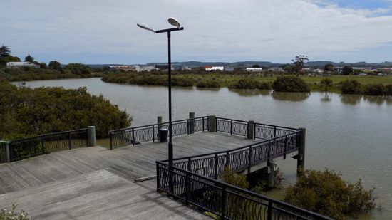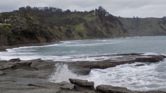 Kilometer um Kilometer weisser Sandstrand, angeblich wird hier in den abgelegenen Ecken sogar textilloses Baden toleriert, aber heute nur gähnende Leere. Wir besuchen die einzige Oil Raffinerie von NZ und bekommen dort im Besucherzentrum in einer sehr gut gemachten Multimedia Show erklärt, wie und welche Produkte aus einem Liter Rohöl dort hergestellt werden. Wir fahren am One Tree Point vorbei,
