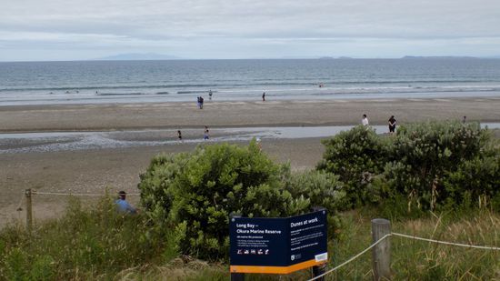 kaufen wir schon mal was zum Abendessen ein, stocken wir unsere Vorräte auf, endlich wieder ‚echtes Campingleben‘ im Mini-WoMo. Wir besuchen noch den Long Bay Regional Park,