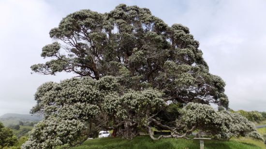der ‚Weihnachtsbaum‘ Neuseelands ist, ähnlich dem Weihnachtsstern bei uns darf er auf keiner Grusskarte fehlen. Im Warkworth Parry Kauri Park mit geschätzten 800 Jahre wieder einer der ältesten Kauri Bäume Neuseelands