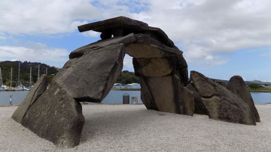 bedauern aufrichtig nicht genug Kleingeld zum Kauf eines der etwa 100 angebotenen, direkt am Kanal gelegenen Häuser mit eigenem Bootsliegeplatz dabei zu haben und erreichen Whangarei. Hier in der wärmsten Stadt Neuseelends (ca. 50.000 Ew.) wollen wir das Wochenende verbringen, bevor wir uns auf den Weg zur Nordspitze der Nordinsel machen. Wir besichtigen The Kauri Clock Factory, hier wird das Holz von uralten, (> 20.000 Jahre) aus Sümpfen geborgenen Kauri Bäumen