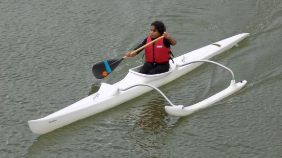 die sich in etwa 7 Minuten öffnen und schliessen lässt, schauen diesen Out-Rigger Kanu Fahrerinnen beim Üben zu,