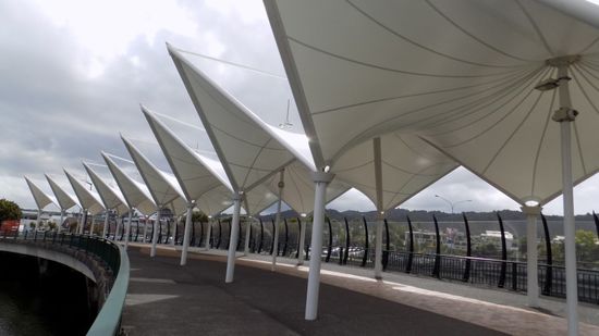 Unser erster Tag in Auckland, wir gehen in einen Supermarkt fürs Frühstück einkaufen - und sind überrascht über das Preisniveau hier, Neuseeland ist definitiv kein ‚preiswertes‘ Reiseland. Unser nächster Weg führt uns dann zum Britomart Transport Center, eine gelungene Mischung aus Bahnhof und Einkaufszentren, hat das etwa als Vorlage für Stuttgart 21 gedient?, denn unter diesen Glaskuppeln befinden sich die Bahnsteige und