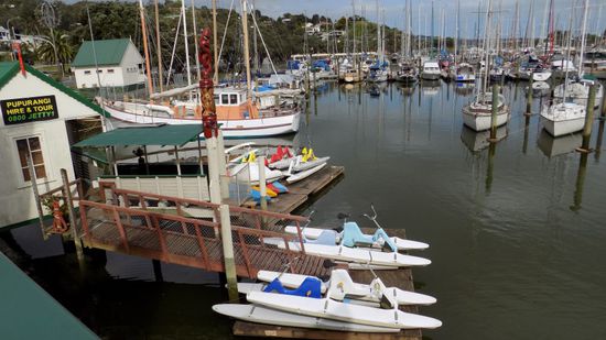das bei Flut auch per Fähre von Auckland aus erreichbar sein soll. In Hellensville, idyllisch an einer Flussschleife gelegen,