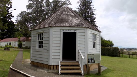 und die kleinste Kirche Neuseelands, für deren Bau angeblich ein einziger Kauri Baum ausreichte.