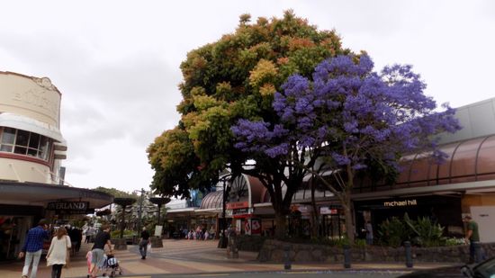 der lokale Wochenmarkt, der jeden Samstag von 6:00 bis 10:00 hier abgehalten wird. Quer durch die Fussgängerzone, vorbei an diesem herrlich blau blühende Baum,