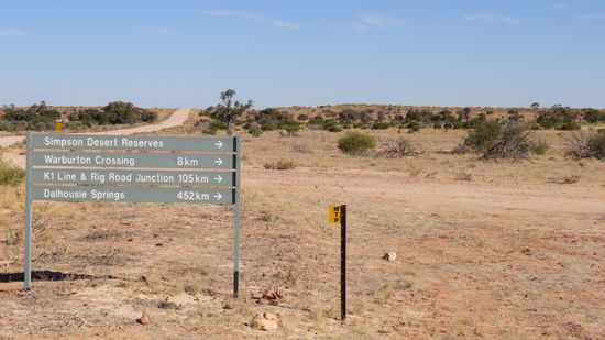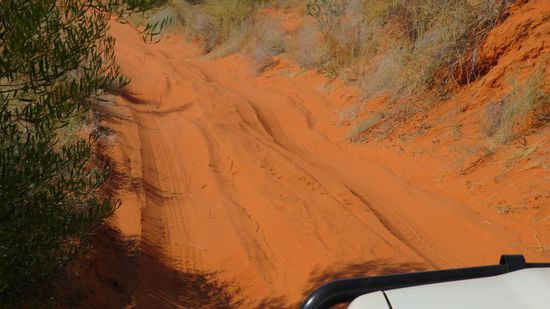 geht es weiter bis zur Kreuzung mit dem Warburton Track, der uns zurück in die Simpson Desert Reserve bringt.