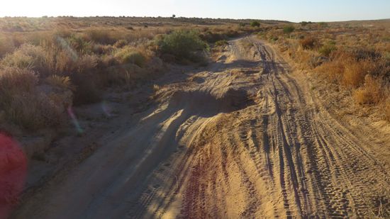 Wir fahren zurück zum Erabena Track und auf dem 12km nach Norden bis zur Kreuzung mit der WAA Line, einem West – Ost Track parallel zur French Line, aber wesentlich weniger befahren. In unseren Augen zu Unrecht, durch den geringeren Verkehr sind die Dünen wesentlich fester, aber mindestens genauso hoch und schwierig wie die auf der French Line.