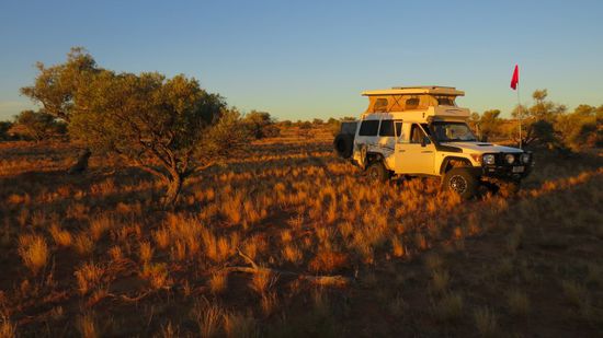 bis wir 120km westlich von Birdsville unseren heutigen SP finden. Im Abendrot noch etwas kochen,