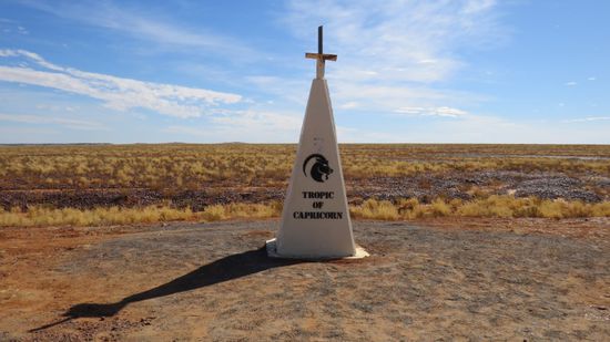dann wird wieder einmal der Wendekreis des Steinbocks überquert,