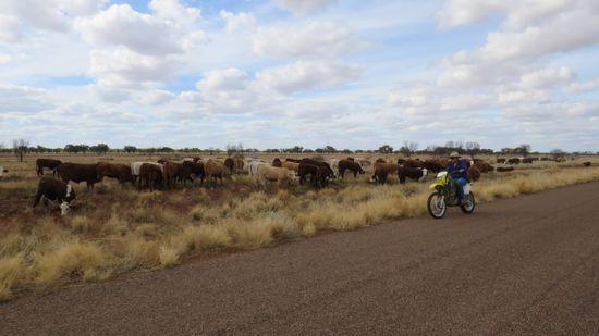 das Pferd wird durch ein Motorrad, das Lasso durch eine Hupe ersetzt, bevor wir Winton erreichen, das zum einen vom Ruhm einiger Dinosaurierfunde zehrt,