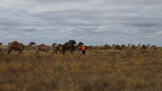 dann zurück auf dem recht langweiligen Highway, die einzige Abwechslung mal eine Gruppe Emus oder diese Kamelkaravane,