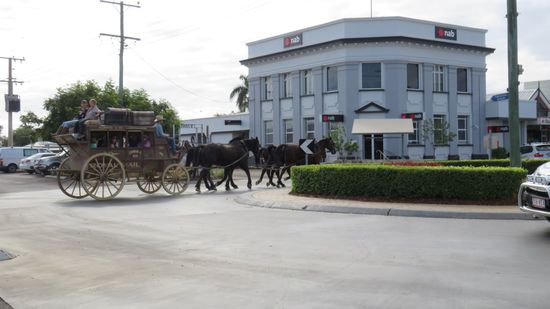 die Delphine kehren in ihre Bucht zurück und wir fahren weiter nach Gympie, Heimat eines der größten Country Festivals Australiens, des Gympie Muster, das alljährlich Ende August hier in der Gegend veranstaltet wird und trotzt Eintrittspreisen von um die AUD 400 für das 3-Tagesticket zehntausende von Besuchern anlockt. Wir bescheiden uns mit einer kurzen Stadtbesichtigung,
