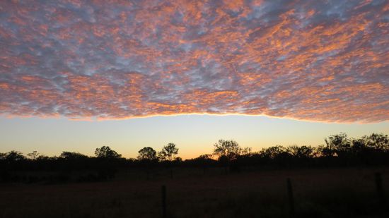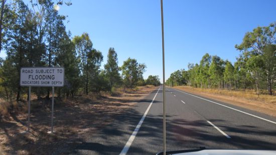 dazu im Info Center noch eine gebührenpflichtige (AUD 15) Multi Media Show über ein Geister-Licht, das Min-Min Light, das hier mal gesehen wurde und das angeblich immer noch herum spuken soll und eine Tankstelle, wo das Diesel nur noch AUD 1,507 kostet. Das war‘s dann aber auch schon wieder, auf der Kennedy Developmental Road, einer nur einspurig geteerten Strasse,