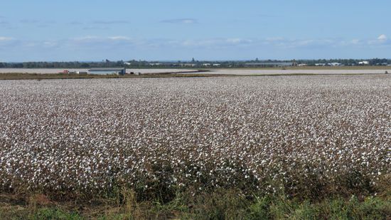 Wir erreichen Emerald, die Baumwollernte ist in vollem Gange, riesige Ballen warten bereits auf den Abtransport,