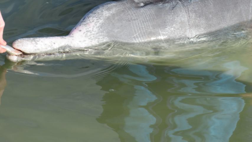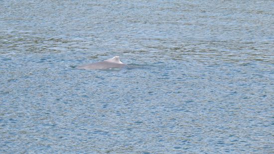 und sehen nun da draussen, am Eingang zur Marina zum ersten Mal einen der Delphine,