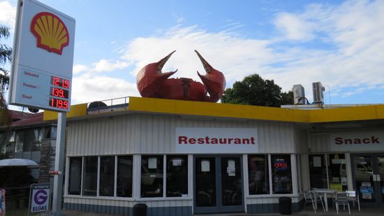 bevor wir dann nach Miriam Vale weiterfahren. Droben auf der Tankstelle die ‚Giant Crab‘,
