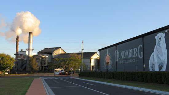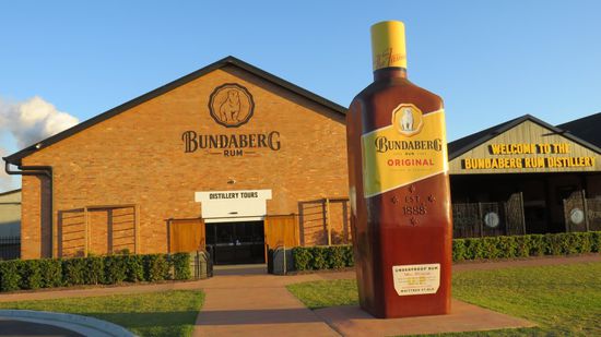 entsprechend voll ist. Unsere Navi- Software macht Mucken, behauptet wir wären mitten im Meer vor Cairns, ca. 1000km nördlich von hier, aber Anja sei Dank entdecken wir wenige km weiter in Gin Gin eine Telstra Wifi Station, ein ‚schneller Software Update‘ – als ob es sowas jemals geben würde – und alles ist wieder gut. Weiter nach Bundaberg zum Einkaufs – Mittagessens – Stadtbummel, zum Besuch der Rumfabrik, deren Guided Tours (mittlerweile AUD 25), wir ja vor 7 Jahren schon absolviert haben, deren Touristen – Empfangs - und Abfertigungshalle in den letzten 12 Monaten wieder einmal vergrößert, verschönert – und verlegt wurde,