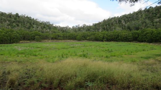 zum Coalstoun Lakes NP. Hier droben auf dem Mt. Le Brun, mit ca. 600.000 Jahren einer der jüngsten Vulkane Australiens befinden sich auf etwa 500m Höhe zwei kleine Kraterseen, zur Regenzeit mit Wasser gefüllt, ein Vogelparadies,
