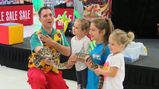 Freitags, im Einkaufszentrum von Maryborough unterhält ein Zauberkünstler-Clown mit seiner Schlange sein überwiegend jugendliches Publikum, gibt ‚stundenlange‘ Fotosessions,