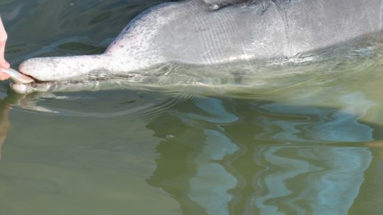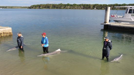 denn wie wir schon vom letzten Besuch her wissen, warten in Tin Can Bay einige Delphine auf ihr Frühstück,