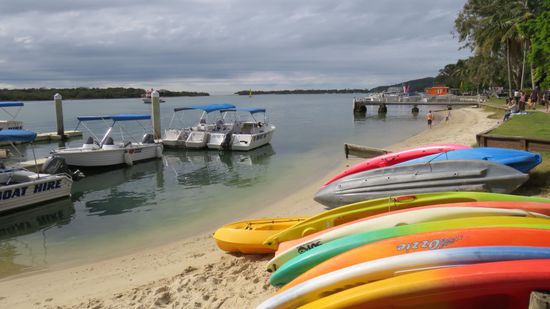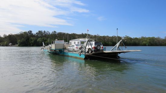 für unseren Geschmack als zu kalt zum Baden empfunden wird. In Tewantin ein kurzer Blick auf die Fähre zum Great Sandy NP, mit der wir im letztes Jahr bereits übergesetzt haben,