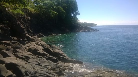 Nach einem weiteren philippinischen Frühstück (Fisch-Gemüsesuppe mit Reis) bin ich heute vormittag an die Westküste nach Lawigan. Und überraschenderweise ist das Wetter auf der anderen Seite der Vulkane (es gibt auf der kleinen Insel 7! Zwei sind erloschen, zwei gelten als ruhend während drei noch aktiv sind), wesentlich besser und sonniger. Die Unterkunft ist toll, noch geiler allerdings die Umgebung. Wenn man in Südost Asien ein Paradies für sich behalten will, muss es vor allem mühsam erreichbar sein. Zumindest in Thailand ist das so, denn Thais laufen ungern. Das gilt wohl auch für Philippinos. Und so führt unten am Ufer ein Pfad über und durch Vulkangestein irgendwann zu einer blauen Lagune. Einfach herrlich hier! Bevor ich überhaupt zum Schnorcheln kam, ist mir was ganz anderes aufgefallen. Königskrabben muss man gar nicht züchten, die gibt's in freier Wildbahn, und hier massenhaft! Allerdings war die Jagd nach ihnen nicht ganz ohne. Auch nasses Vulkangestein kann glitschig sein, allerdings nur für mich, nicht für die Viecher. Also hielt ich mich an die fetten Langusten, die sind nicht ganz so flink. Wer jemals welche fangen will, dem seien Handschuhe empfohlen, den die Scheren funktionieren...