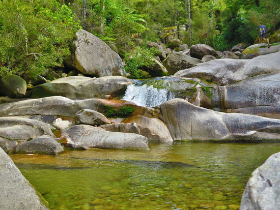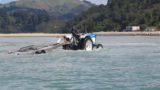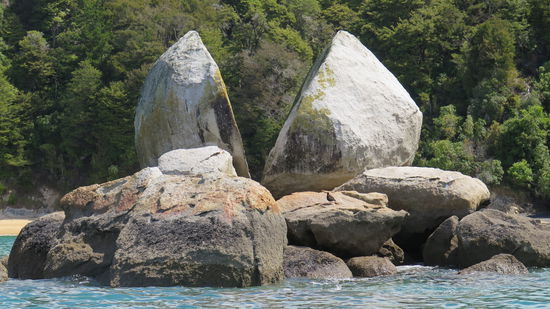 Auf ging es in der Früh nach einem etwas längeren Schläfchen zum Abel Tasman NP. Zuerst sind wir aber noch zum I-Site in Motueka gefahren, um uns zu erkundigen was man wohl in ein paar Stunden so machen könnte. Nach kurzer und guter Beratung haben wir uns dazu entschlossen per Wassertaxi, was nicht wirklich günstig ist, von Marahau zur Anchorage Bay zu fahren, um von dort aus zurück zum Auto zu wandern. Unser Skipper auf dem Wassertaxi machte seine Sache jedoch super gut und zeigte uns ein paar Sehenswürdigkeiten auf dem Wasserweg. Ganz interessant ist die Art und Weise wie man zu Wasser gelassen wird. Zuerst fährt man im Boot aufgeladen auf einen Traktor zum Strand, auf dem man dann bei Ebbe noch einige Meter vom Traktor zum Wasser hingebracht wird. Sehenswürdigkeiten auf dem Wasser. Zum einen den „Split Apple Rock“. Ein großer runder Fels in der Bucht, welcher genau in der Mitte in zwei Teile geteilt ist. Aufgrund der brüchigen Beschaffenheit der Steine kann das schon mal passieren. Man findet diese brüchigen Steine und Felsen überall im Park. Auf dem weiteren Weg machten wir auch noch kurz Stopp bei der Adele Island, um ein paar Robben zu sehen. Diese faulen Gesellen liegen den lieben langen Tag auf den Felsen rum und chillen ab. Gut, für Fotos können die schon ab und zu posieren. In der Anchorage Bay angekommen machten wir uns auf Wanderschaft. Zuerst zum Cleopatra Pool und dann zurück über einen Teil des Great Coastal Walk. Insgesamt sind wir an dem Tag um die 20km gewandert. Auf dem Weg ein paar tolle Sichten aufs Meer, aber sonst eher viel Farn und noch mehr Farn. Nicht großartig spannend, aber sicherlich ganz super für Wanderfreaks. Total ausgelaugt freuten wir uns in das Erstbeste Restaurant, dem Park Cafe, zu gehen. Das Essen war dementsprechend auch eher mittelprächtig. Zurück in Nelson sind wir nur noch ins Bett gefallen.