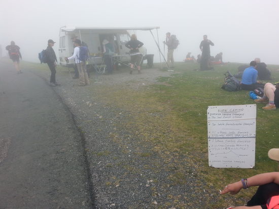 Als wir irgendwann am Pass ankamen schmissen wir uns auf den Boden und schauten nach Roncesvalles runter, es lag vollständig unter einer Wolke. Es war ein super Bild.