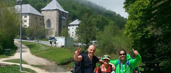 Nachdem ich mich dann wieder aus dem Bett schrauben konnte, nahm ich meine letzte Dose Kölsch aus dem Rucksack und legte mich vor die Abtei in das Gras. Anschließend machte ich einen Rundgang um die Abtei (so gut ich noch gehen konnte) und traf draußen am Tisch sitzend auf Gabi. Ich freute mich Sie wiederzusehen, setzte mich und quatschte mit Ihr bis auch Raffael aus der Kirche kommend dazukam. Nach einem Glas Bier machte ich mich auf die Suche nach Maria und Nilton und traf sie vor dem Restaurant. Dann gingen wir gemeinsam Essen und hatten wieder eine Menge Spaß