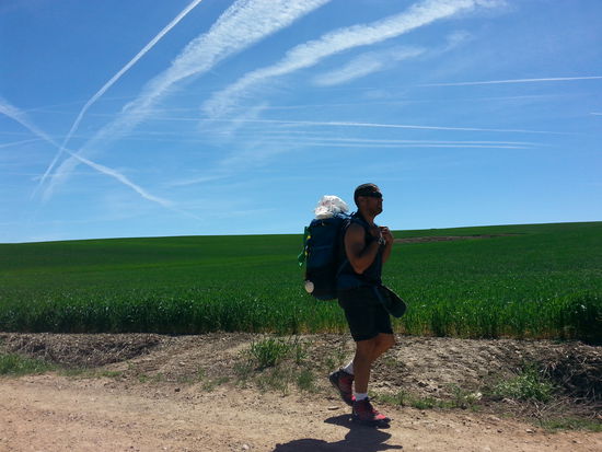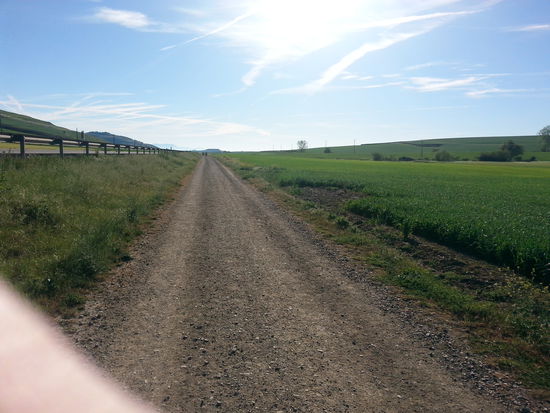 Es ging zunächst nah an einer Nationalstraße auf geschottertem Weg. Auf diesem Weg trafen wir Bruno, einer von unseren Brasilianern mit dem wir ein langes Stück zusammen gingen. Wir kamen an eine Herberge in Villamayor, in der ich mir ein neues Cappy kaufen konnte. Dieses wurde auch Zeit, da die Sonne echt wieder brannte.