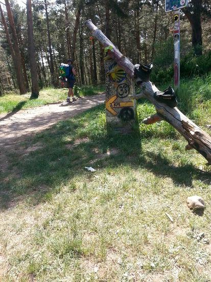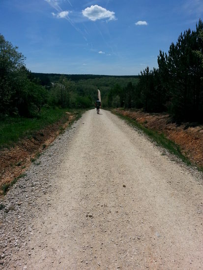 Nach dem Pass ging es zunächst über einen langen geraden Weg, später über eine breite Schneise in Richtung San Juan de Ortega. Die Sonne brannte, Nilton hatte schwere Knieprobleme, wir hatten kein Wasser mehr und wir waren unendlich platt!! Auf dem Weg traf ich auf einen Amerikaner der nur noch auf dem Weg lag. Aber auch er sollte es schaffen, ich sah ihn später in der Herberge.