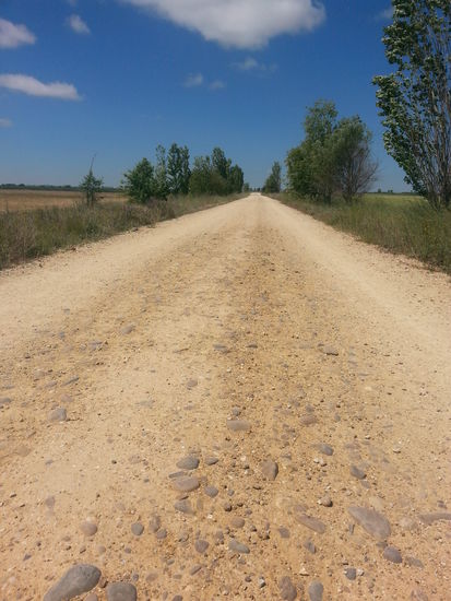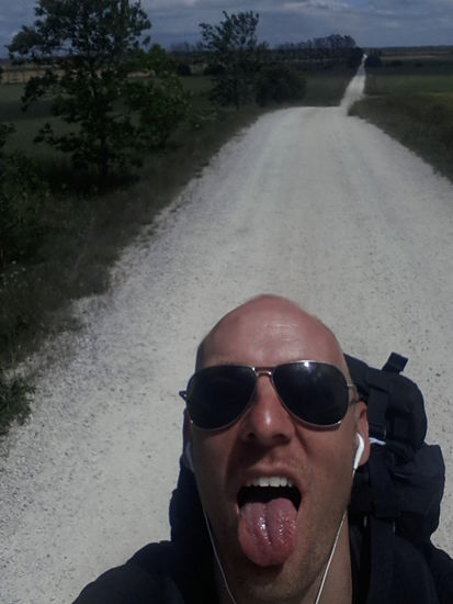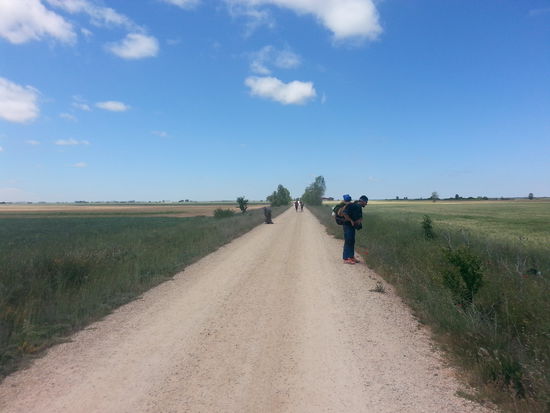 Ich sah irgendwann für zirka 15 km keinen Menschen mehr. Das Wetter war sonnig und windig. Es ist immer ein gerader Weg aus Staub, um einen herum sind nur Weizenfelder. Es ist göttlich. Ich glaube es bedarf aber auch der Tatsache, dass man mittlerweile seit 14 Tagen und 400 km unterwegs war um das Gefühl der Meseta hier vollständig zu spüren. Boah, ich ging und um mich herum war nichts. Klar, ich glaube das kann man auch in der Weite von Mecklenburg Vorpommern erleben, aber hier wirkt es anders. Es war ein unglaubliches und so lange anhaltendes Gefühl. Es war Simon and Garfunkels "Sound of Silence" aber auch foo fighters "everlong" auf meinem Ohr was mich in die Knie zwang. INTENSIV!!!!!!!!!!!!