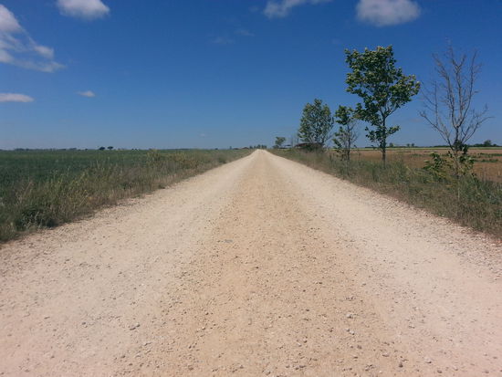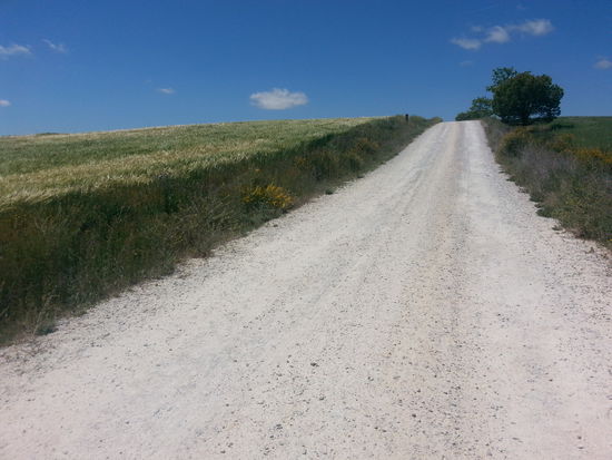 Mein Outdoor Führer schrieb, dass in der Ferne von 1,5 km irgendwann ein Kirchturm zu erkennen sei, und gratulierte zu dieser Sicht, da man den härtesten Teil der Meseta überstanden hätte.