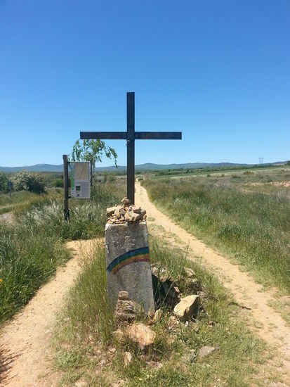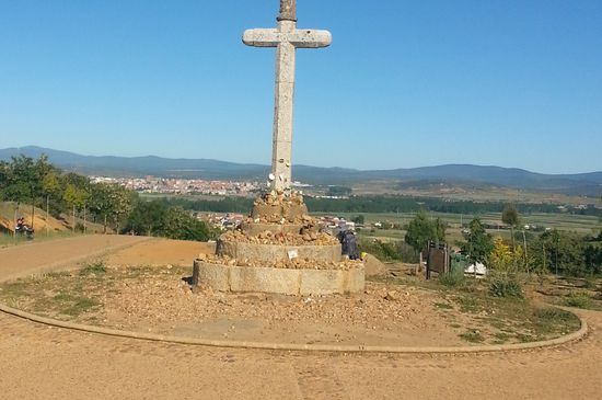 Schließlich kam ich am Wegkreuz an. Hier trafen die beiden Wege aus Hospital de Orbigo wieder zusammen deshalb waren wieder mehrere Perigrinos auf dem Weg. Hier hatte man einen super Blick auf Astorga.
